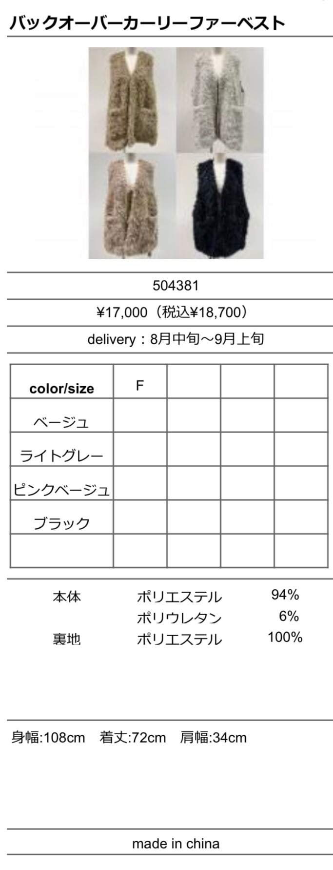 CYANTokyo バックオーバーカーリーファーベスト(N)(P)