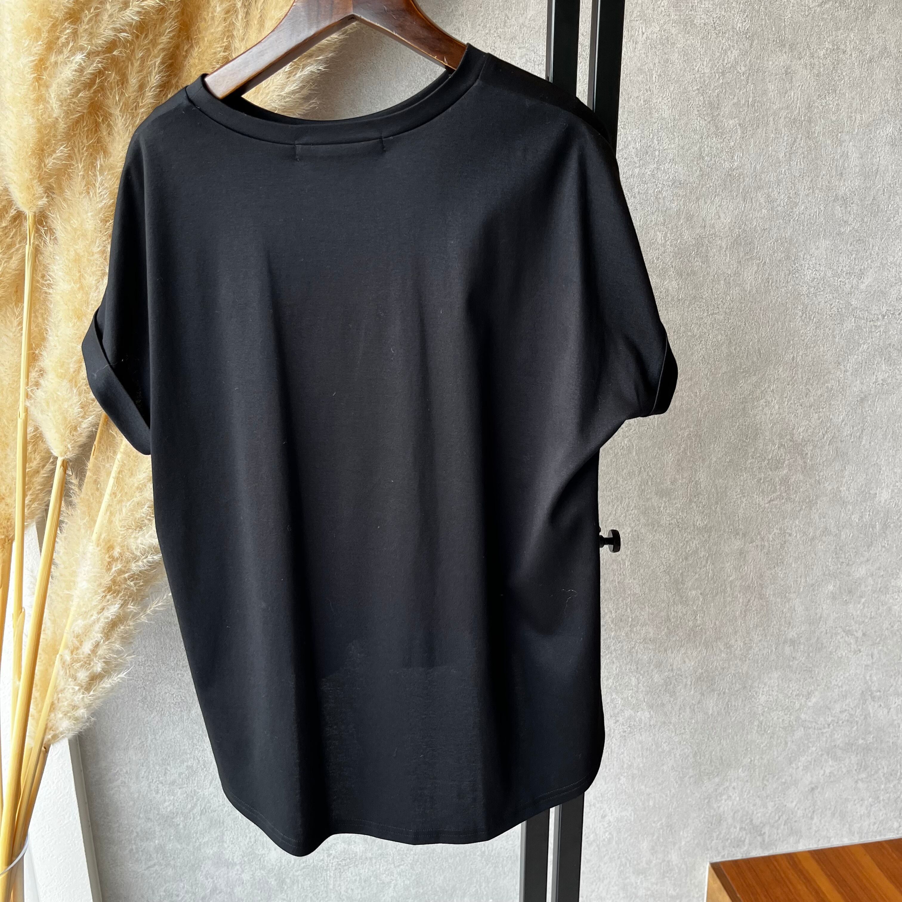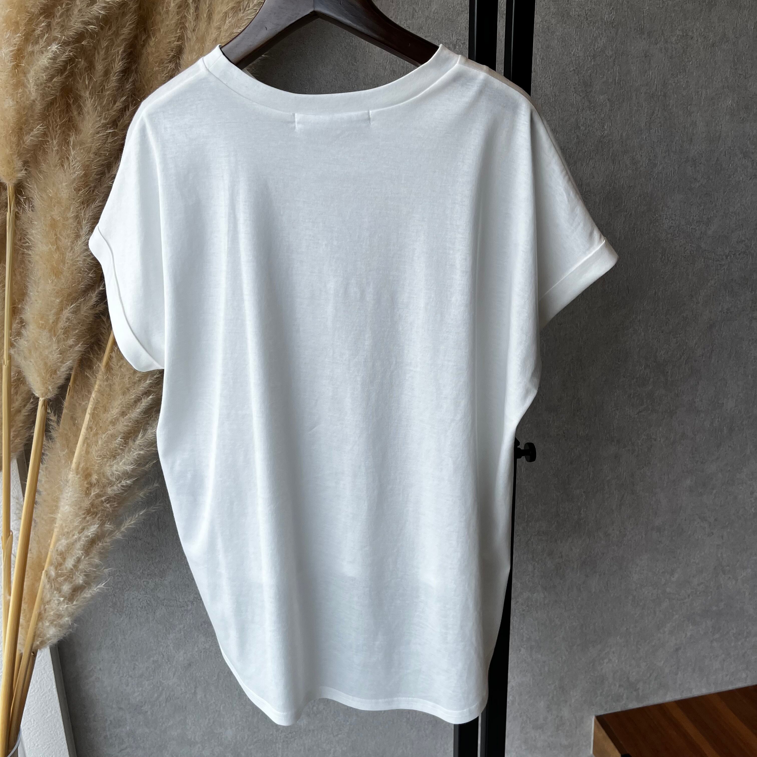 シンプルなロゴで使いやすいややお袖は短め(ロールアップ)のコンパクトTシャツです。