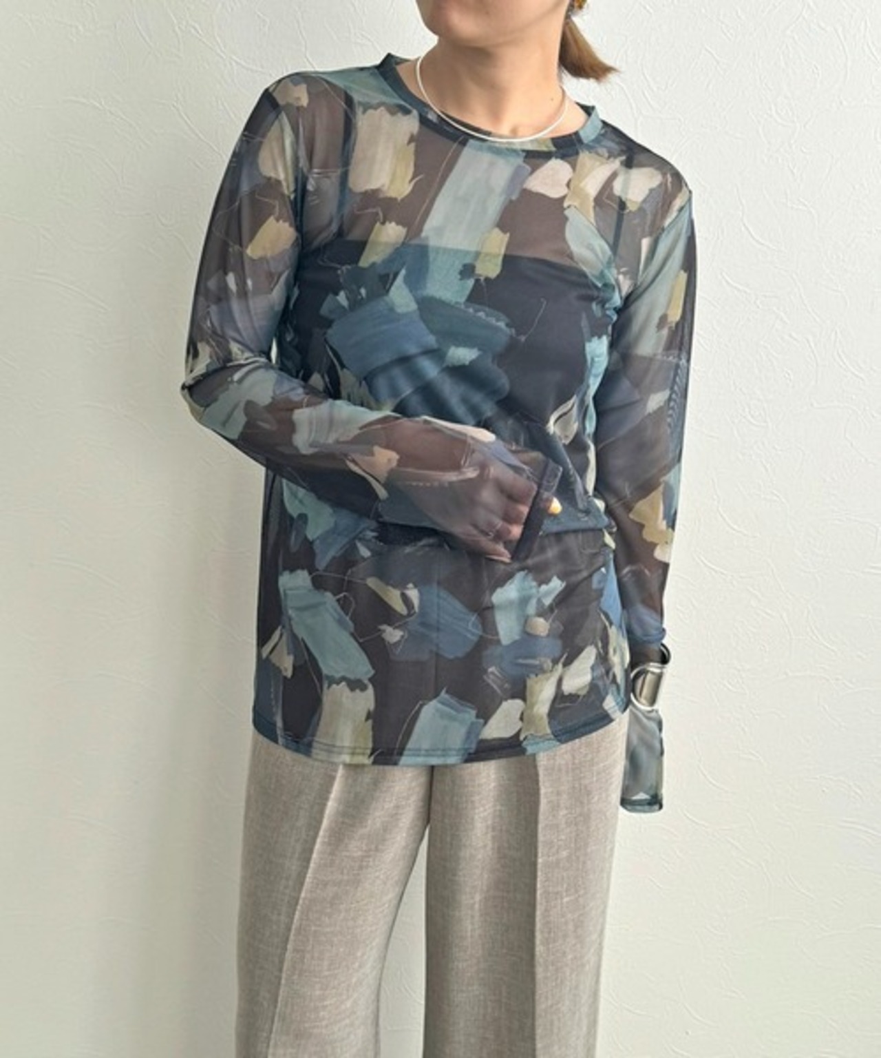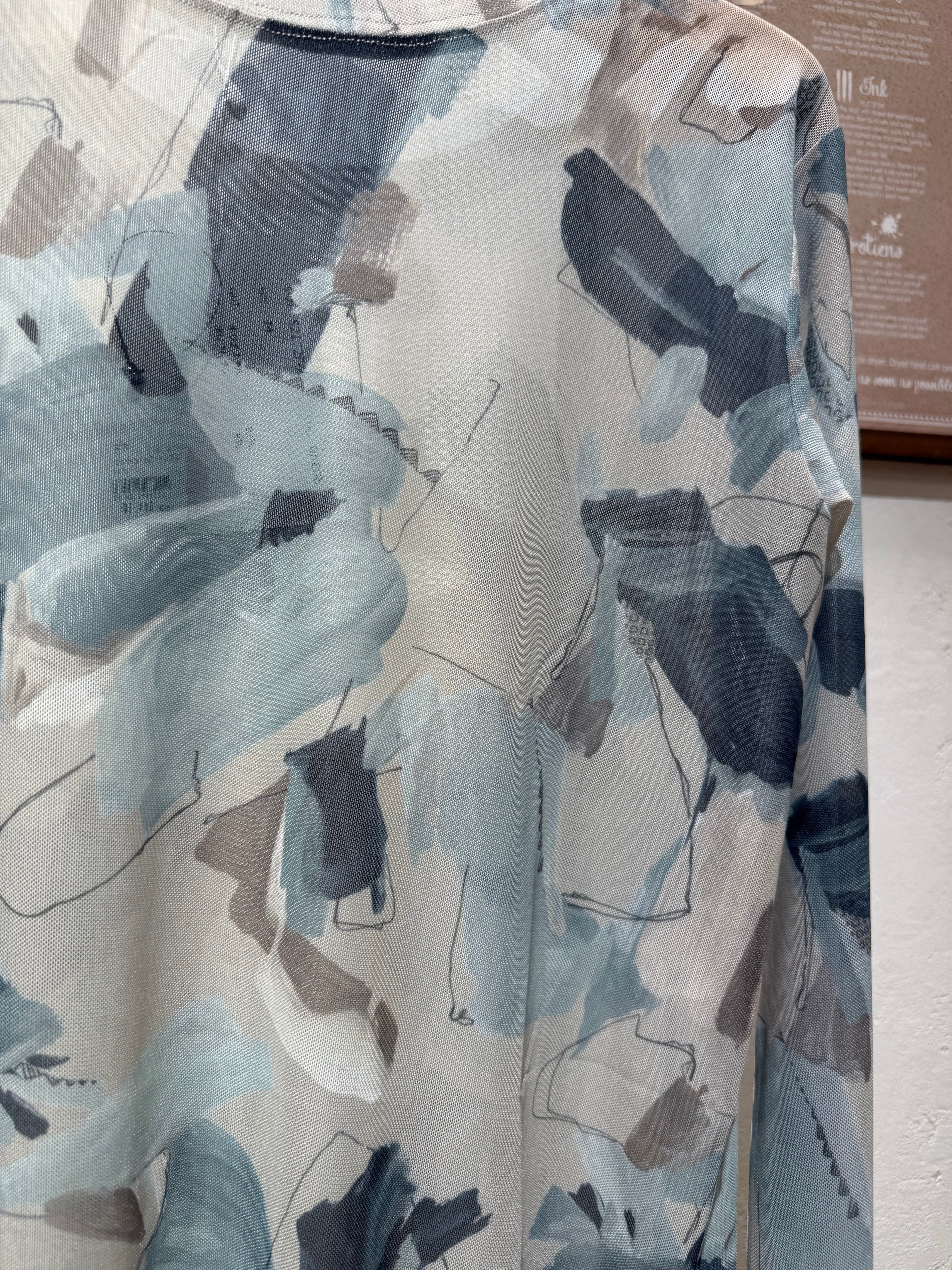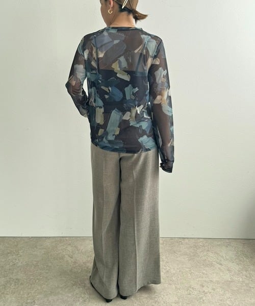 LHELBIEオリジナルのニュアンスプリントがキャッチーなシアーチュールトップス。