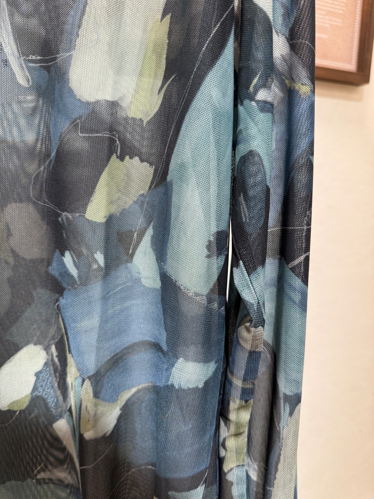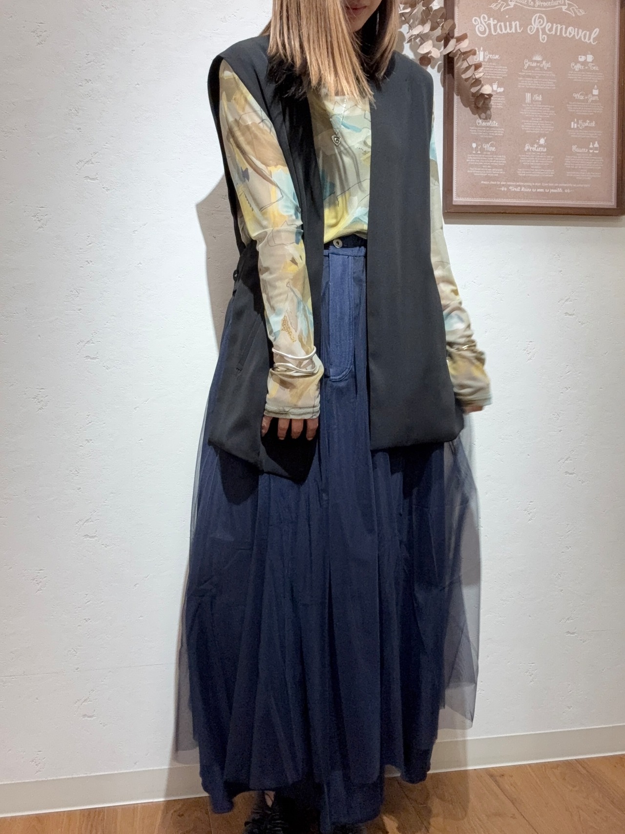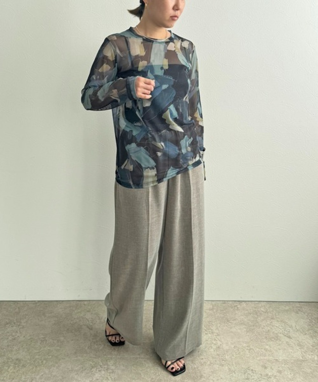 LHELBIEオリジナルのニュアンスプリントがキャッチーなシアーチュールトップス。