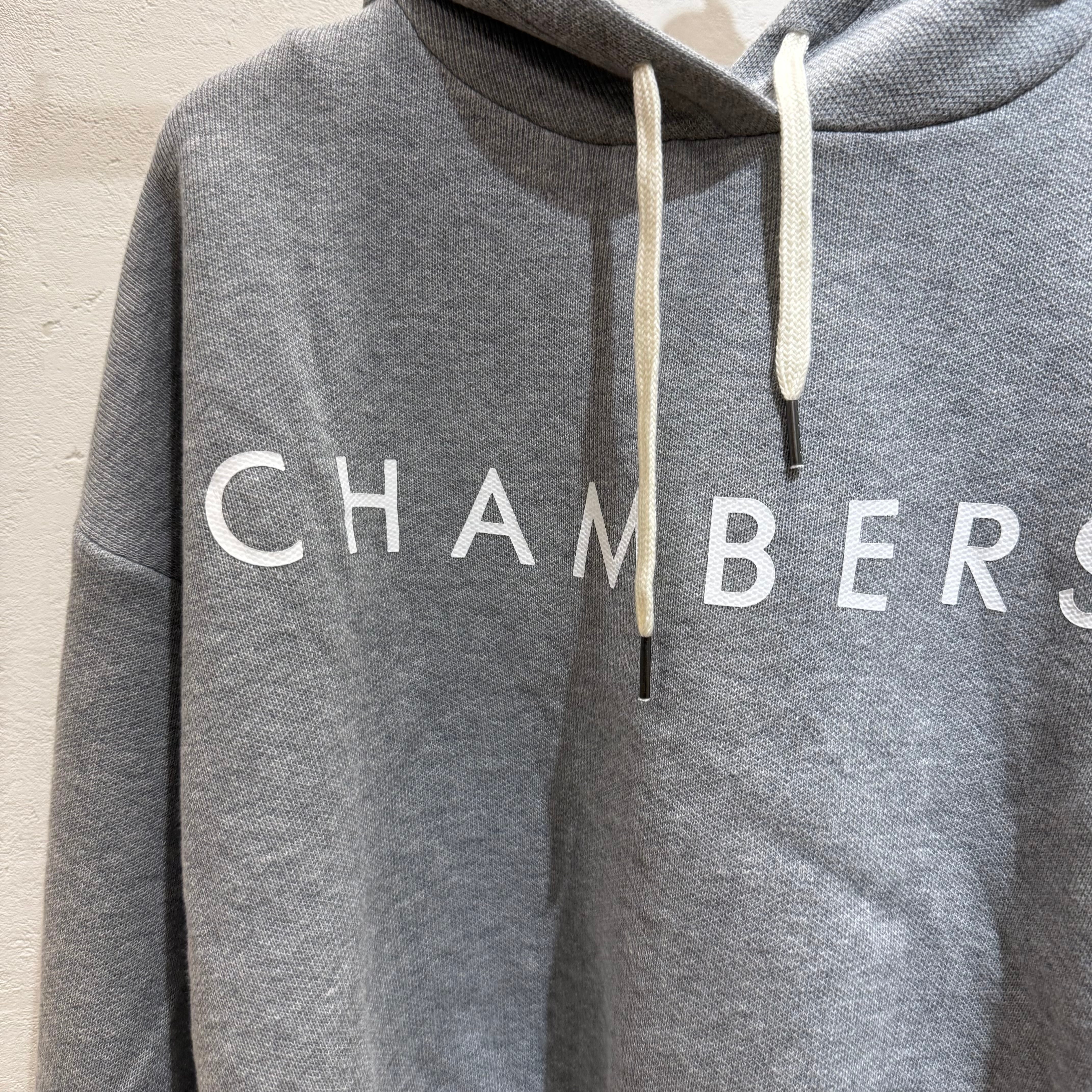 フロントにはシンプルなロゴを配し、ゆったりとしたドロップショルダーとコンパクトめな丈感のバランスが◎