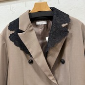 ハンサム顔のジャケットにレース襟をレイヤードさせた着映え力抜群の1枚。