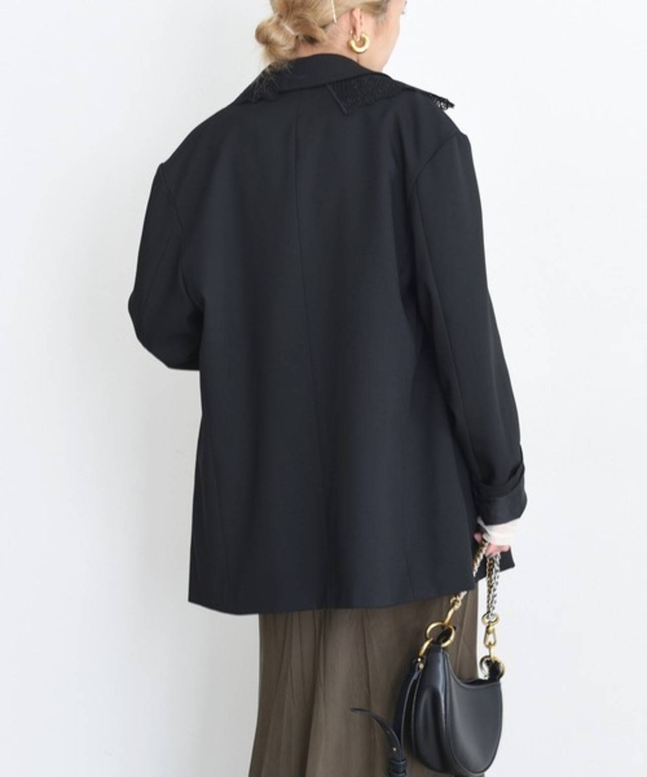 程よいゆるさのあるサイズ感が全体を甘すぎないように整えてくれています。