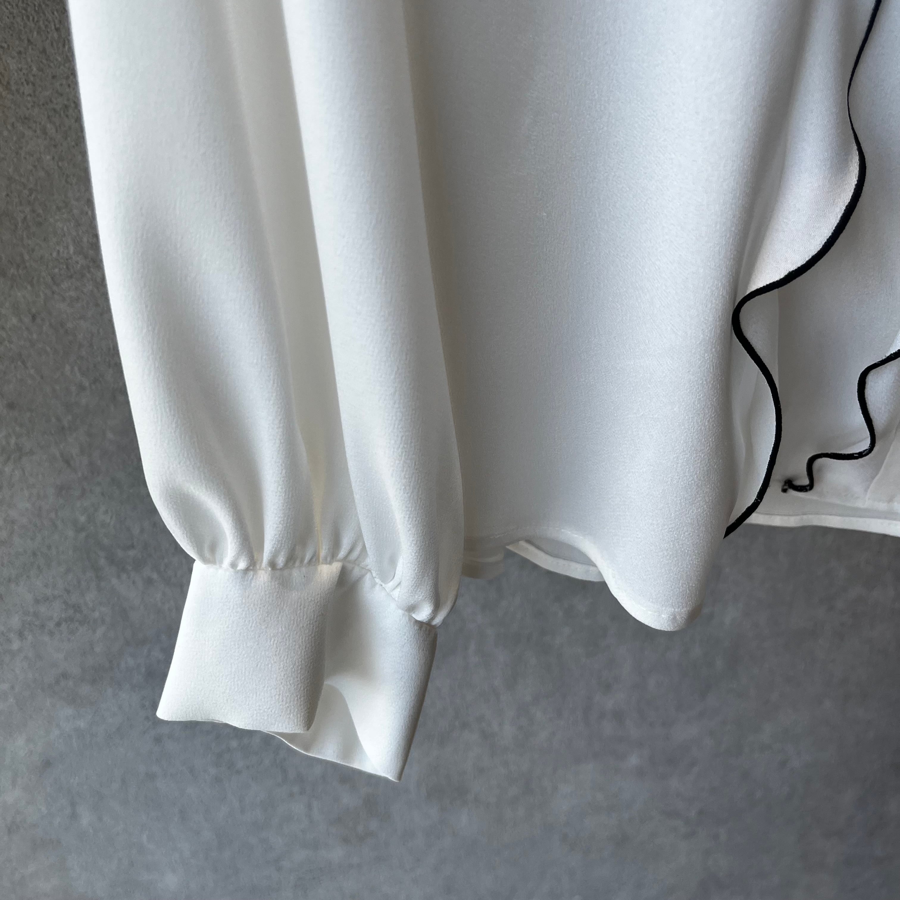 上品なフリル使いのブラウス。