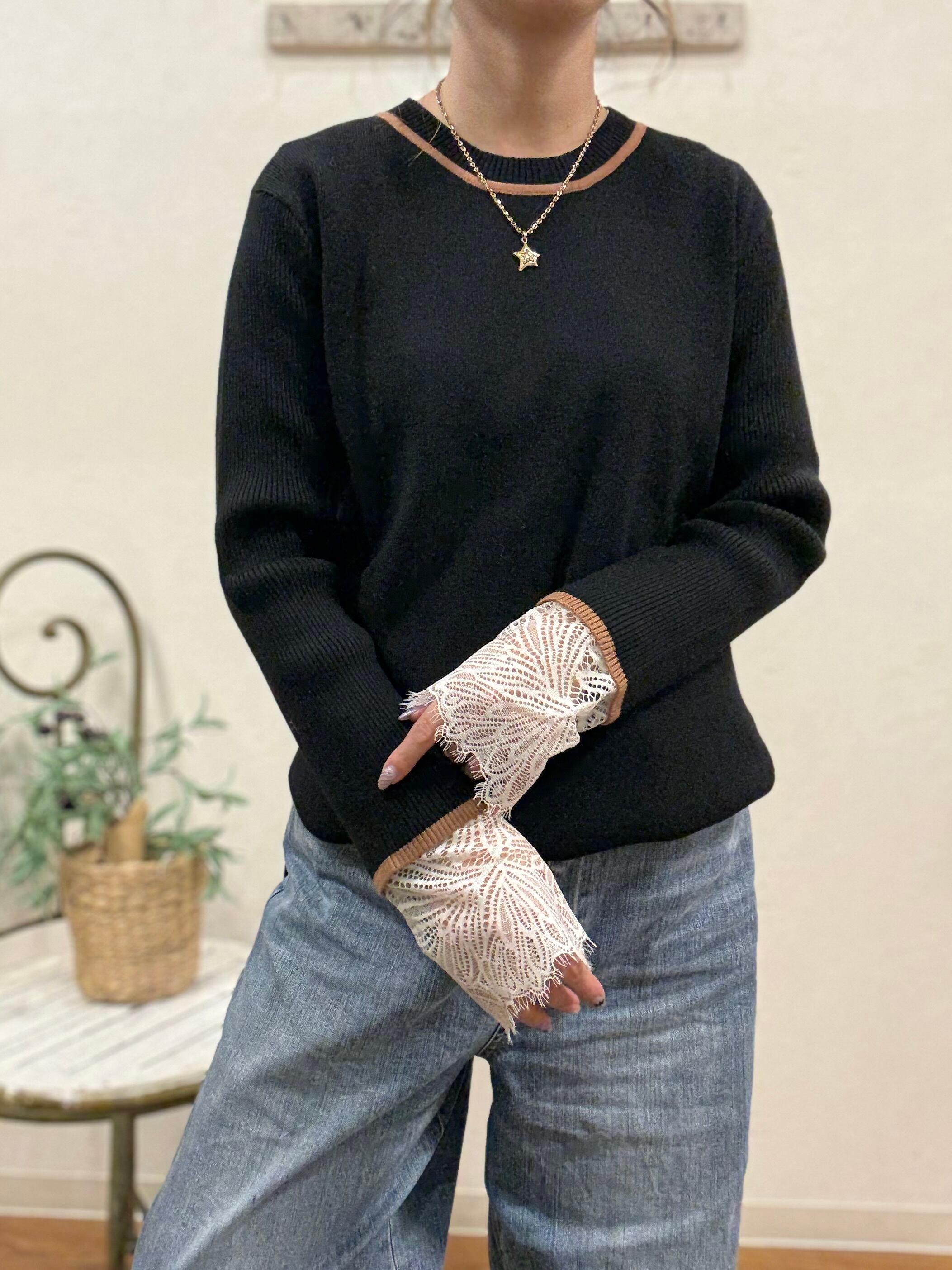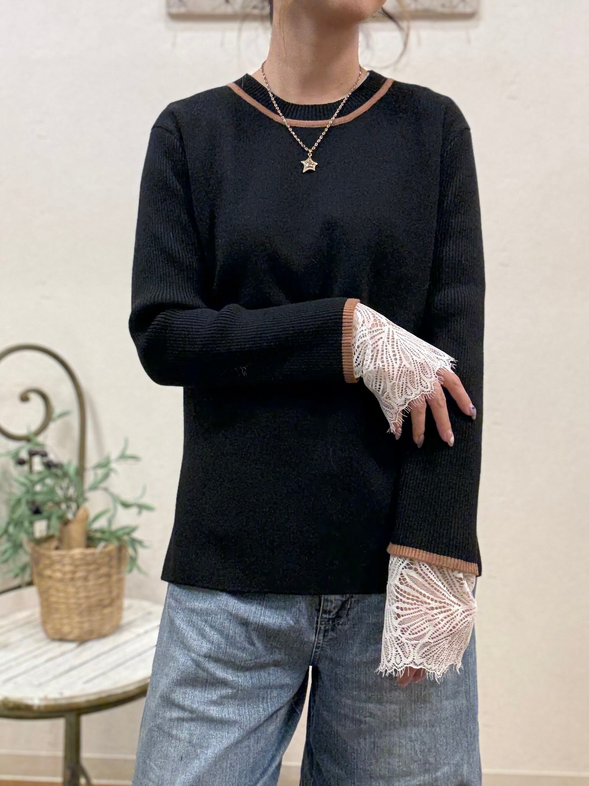 LHELBIE カフスレースニットトップス(P)