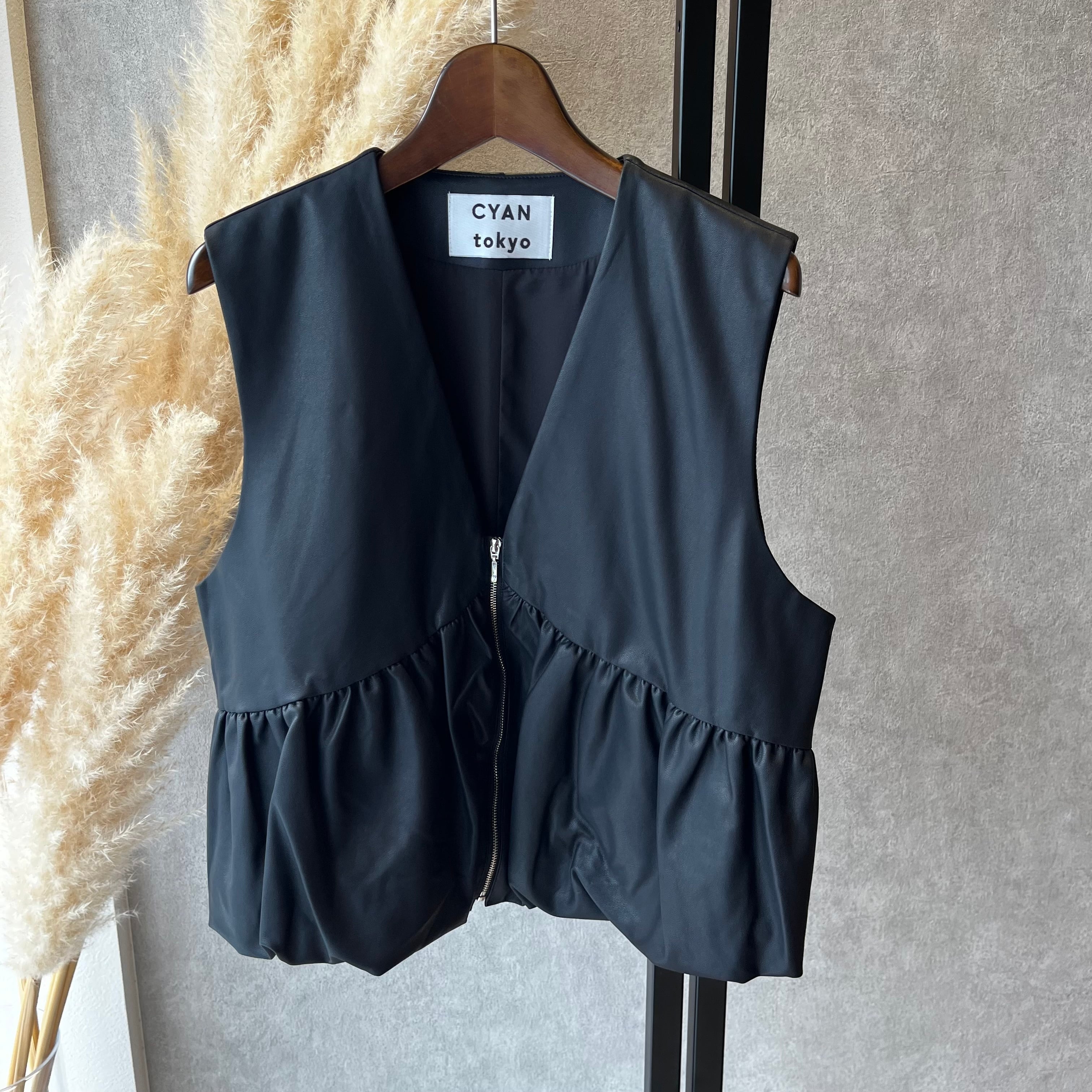 CYANTokyo ヴィーガンレザーバルーンギャザーベスト(N)