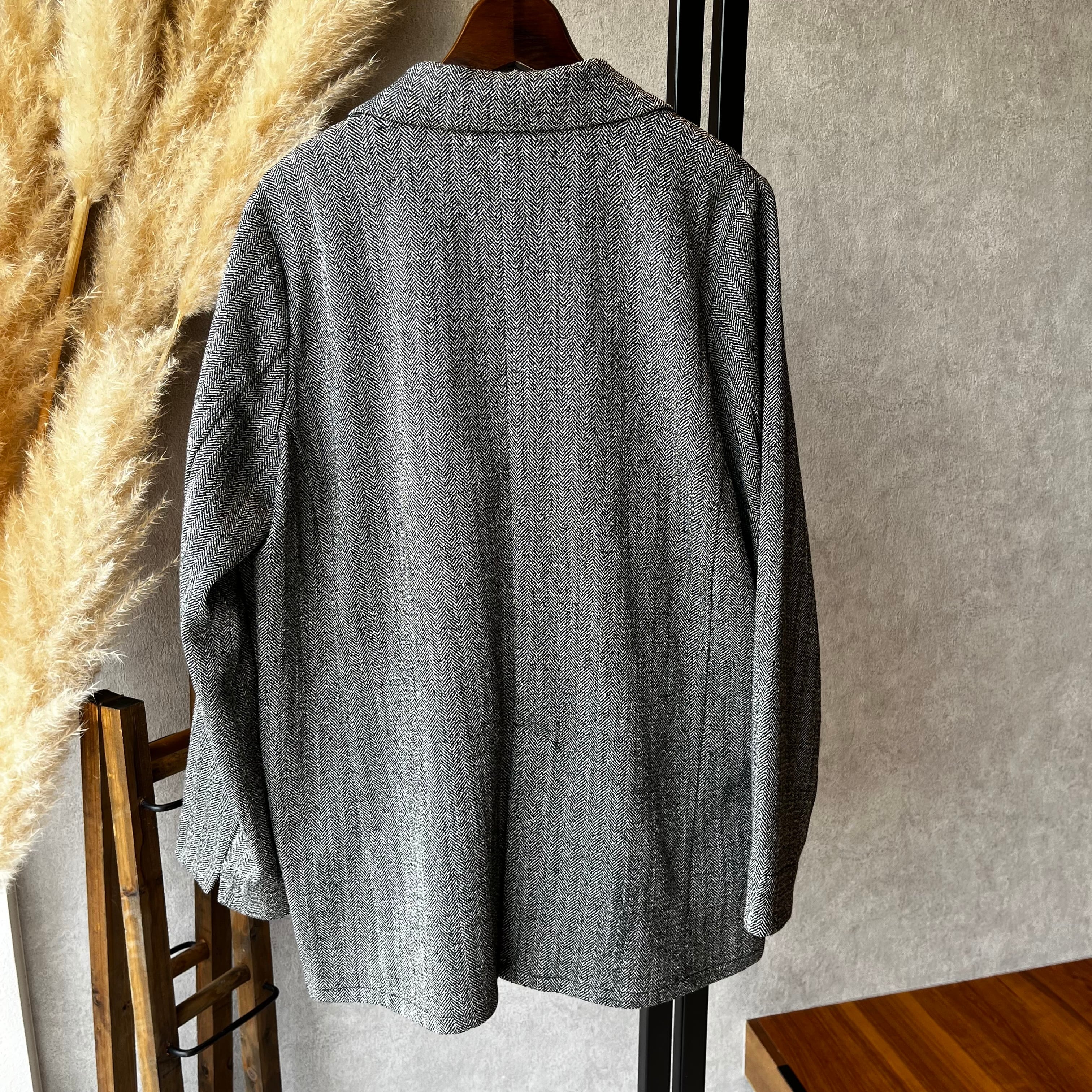 ゆったりとしたサイズ感で中にミドルゲージのニットなども着れるので、晩夏から冬までシーズン通して長く着用いただけます。