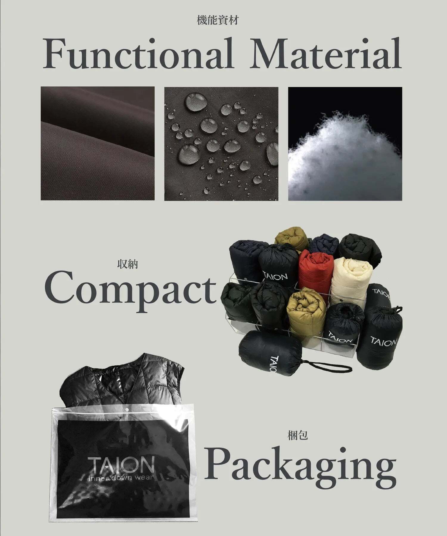軽さや吸い付くような肌触りを追及したナイロン素材を採用、保温性の高い800FPダウンを使用し、ダイヤキルトでシンプルでクラシックな雰囲気に仕上げました。