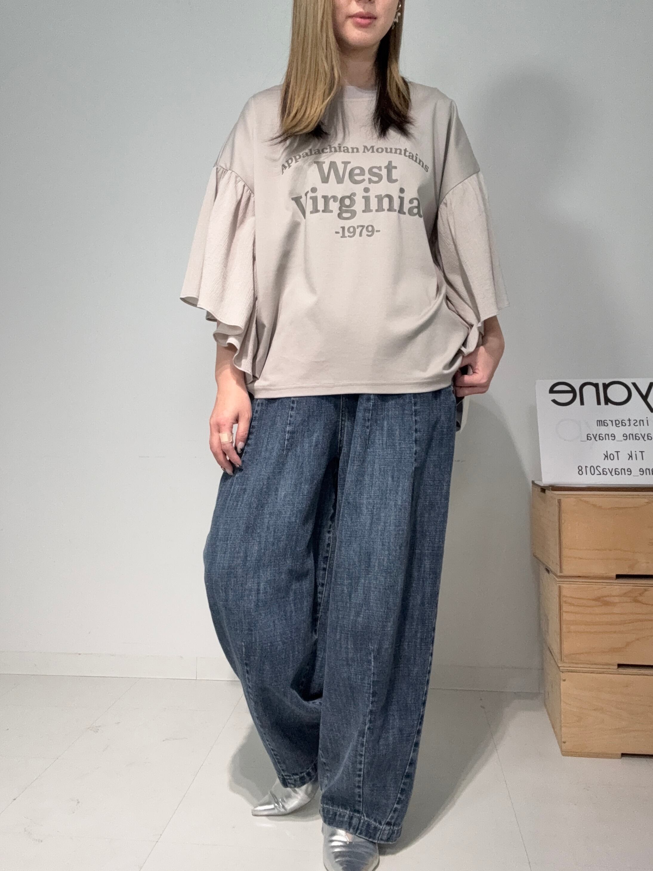 ayane ひらひらスリーブロゴTシャツ(N)