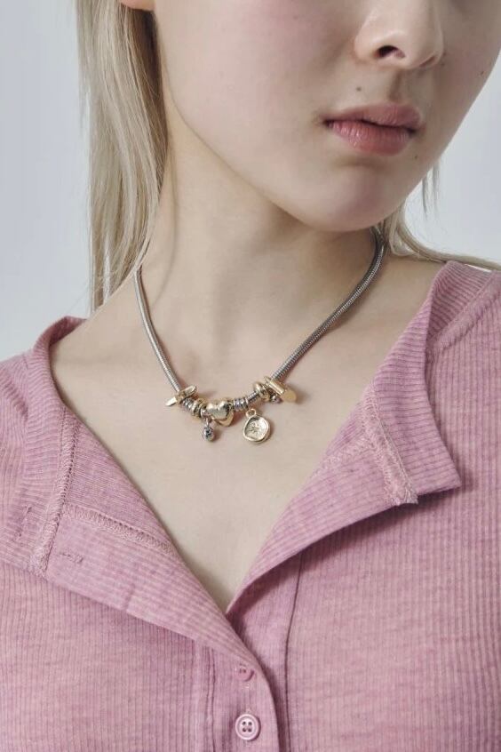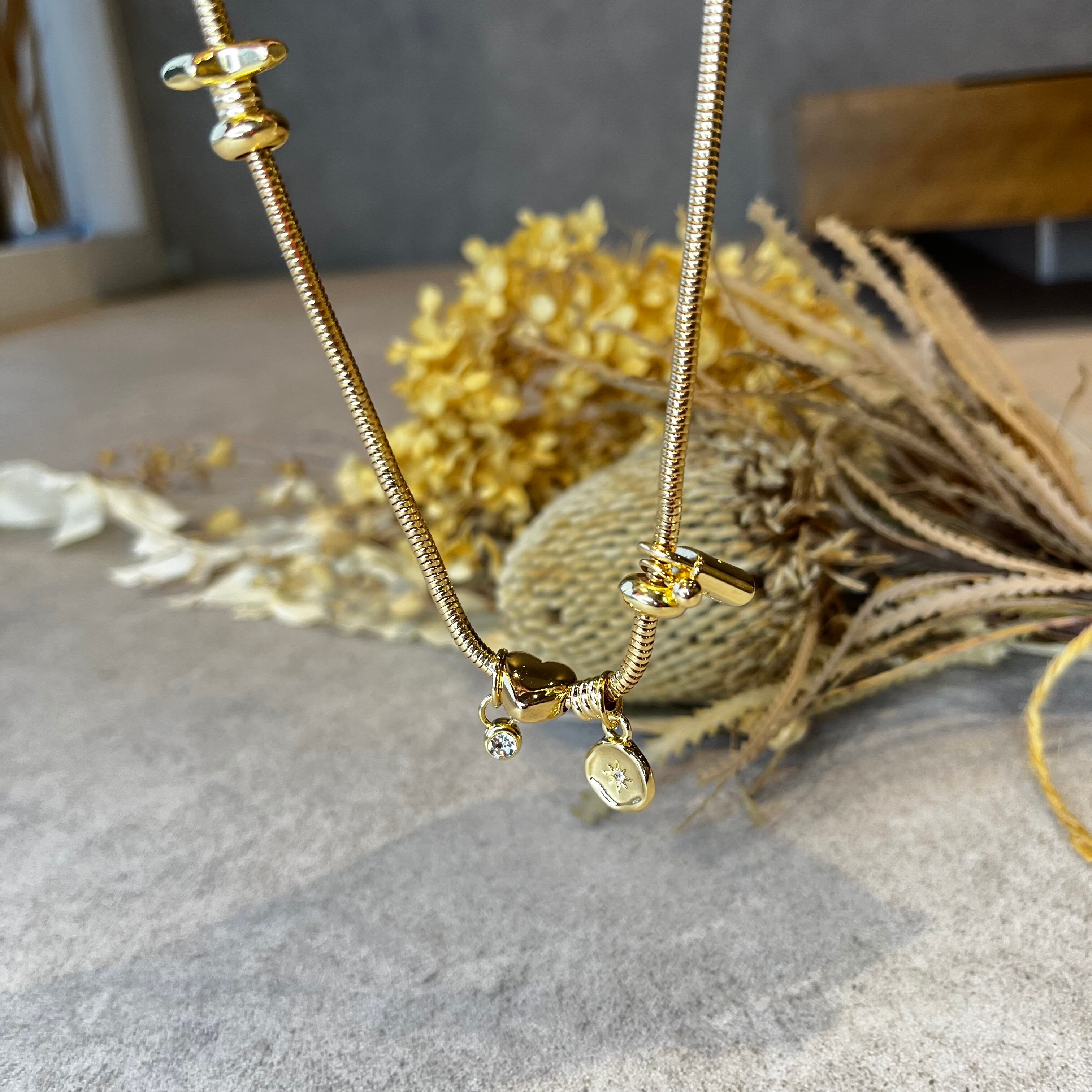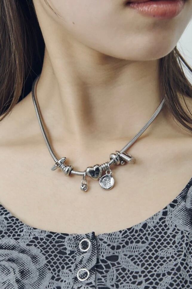 GOLDY ミックス モチーフ スネーク チェーン ネックレス (N)