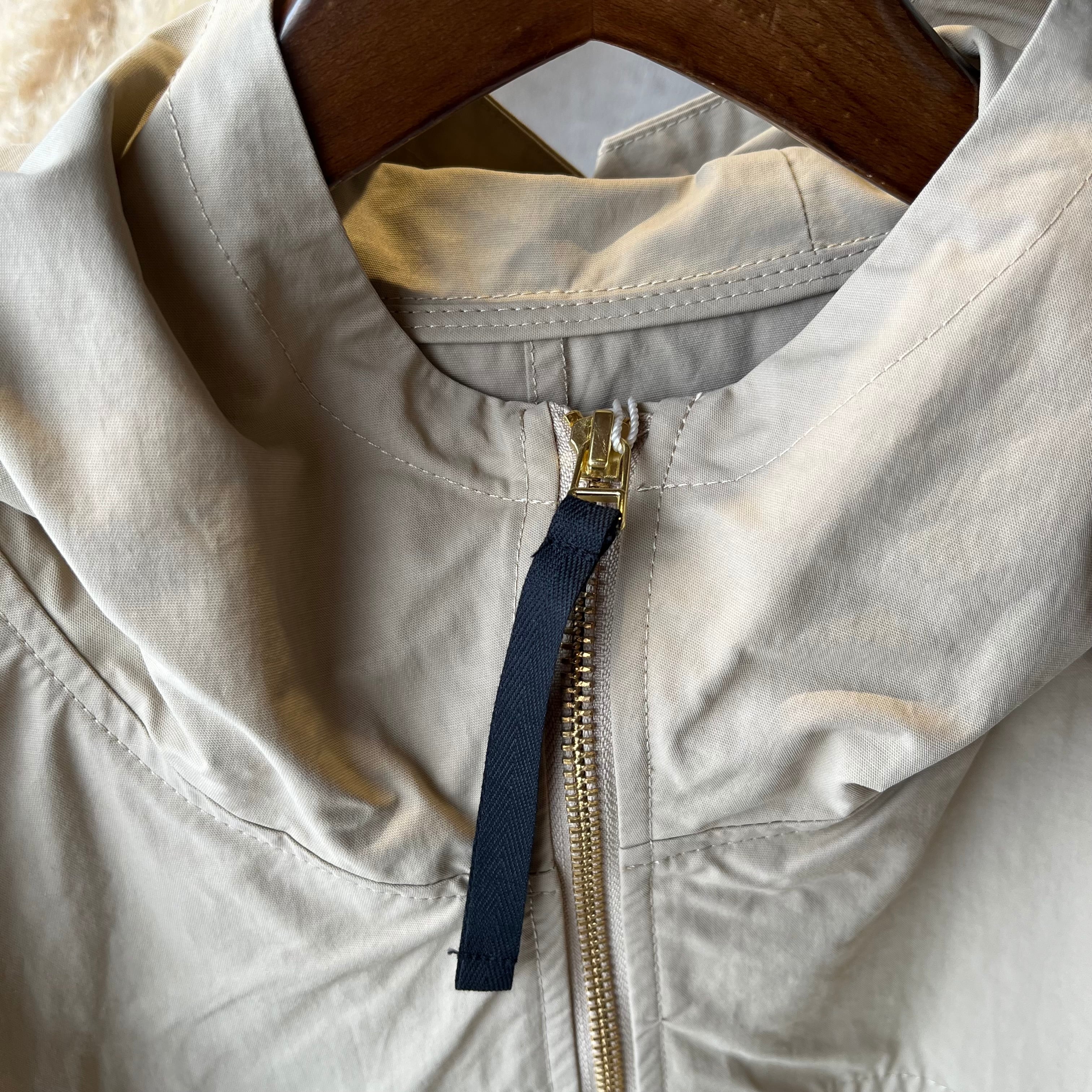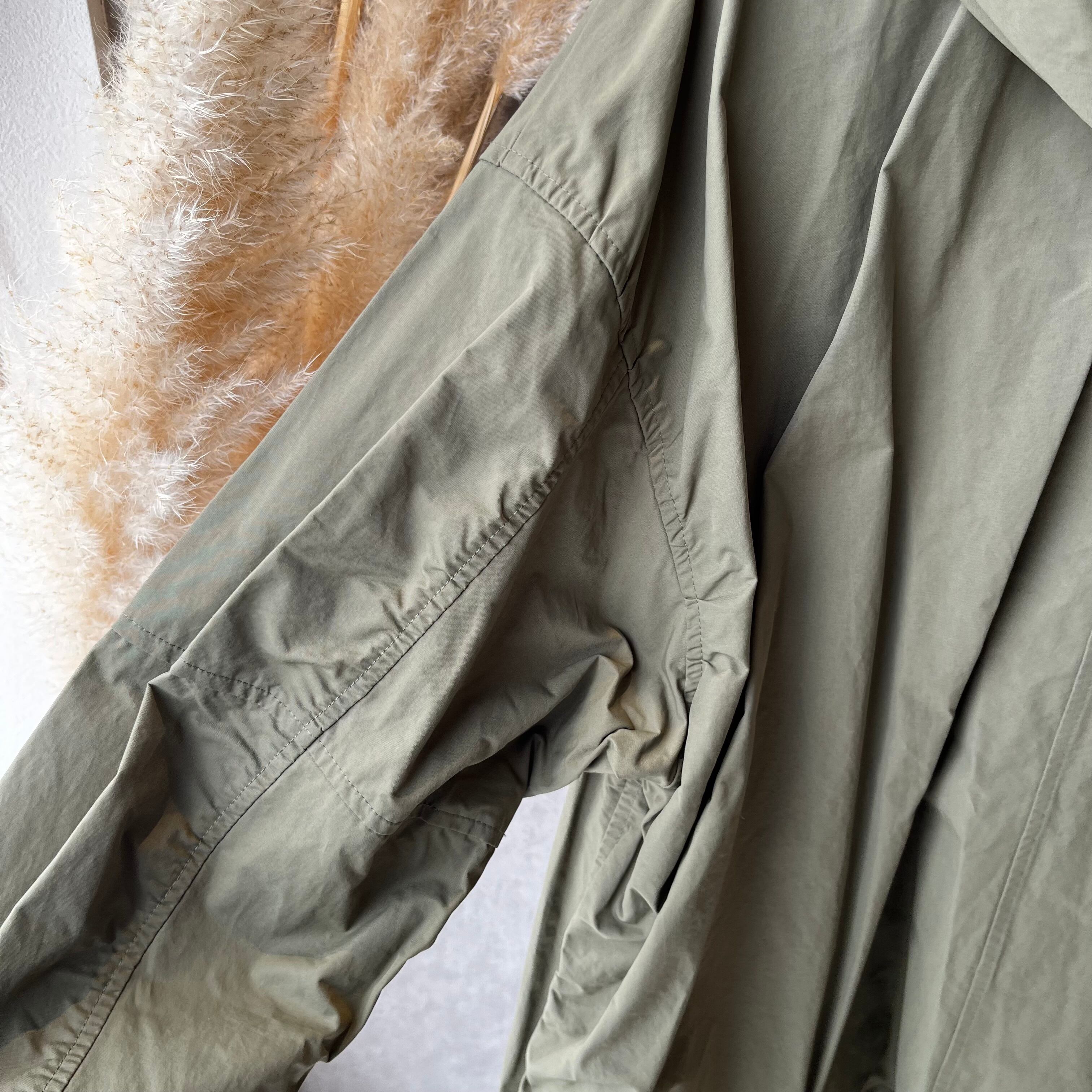 ハリ感のあるナイロン混コットン素材が春先や秋口にぴったりな軽やかさ。生地に洗いをかけ、天日干しのようなドライタッチでこなれ感のある素材です。