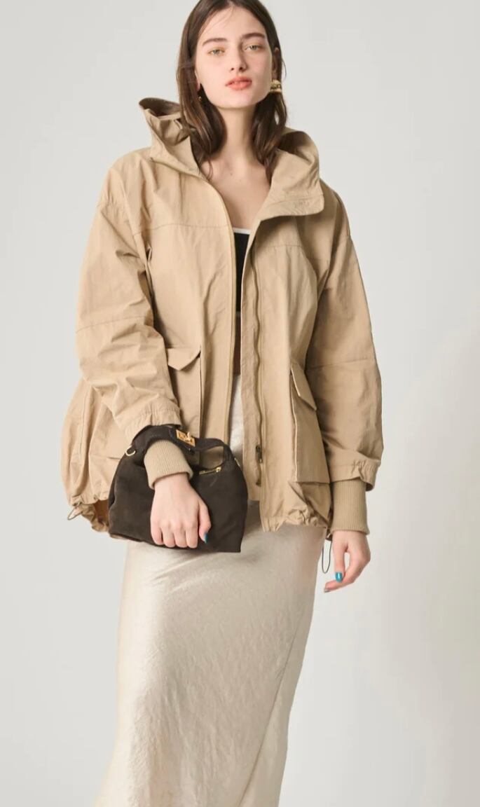 ご自宅で洗濯機洗いできるのも嬉しいポイント。裾はドロスト入りで、フレアなシルエットからギャザーを寄せて雰囲気を変えてお楽しみ頂けます。顔を覆えるようなおおきめなフード付。