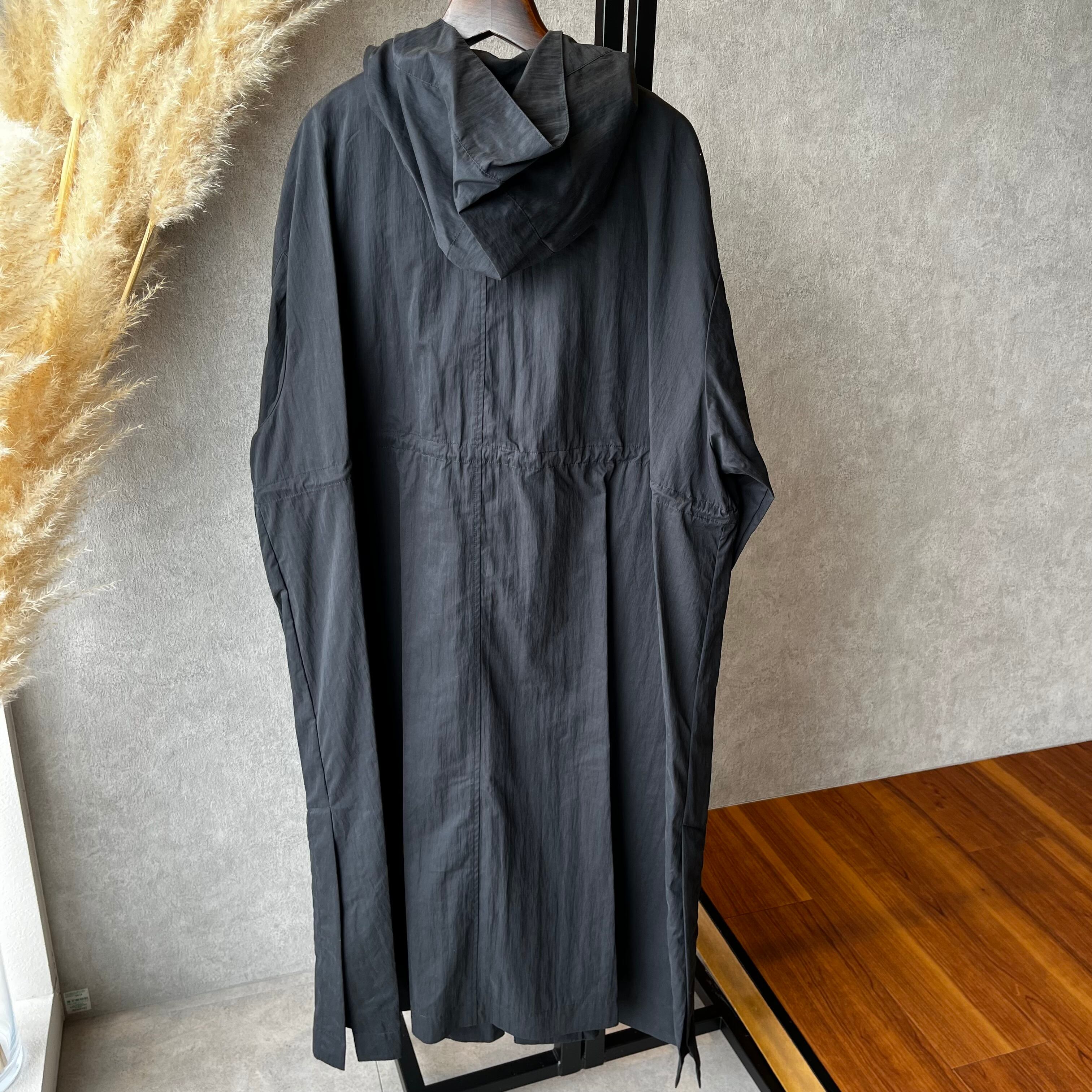 立体的なフードがポイントのロングコート。程よいハリと少しの落ち感で、アウトドアなディティールを取り入れながらもきれいめにも着られる大人っぽさを持つアウターです。内側のドロストを調整することでウエストマークしたシルエットでも着用可能。