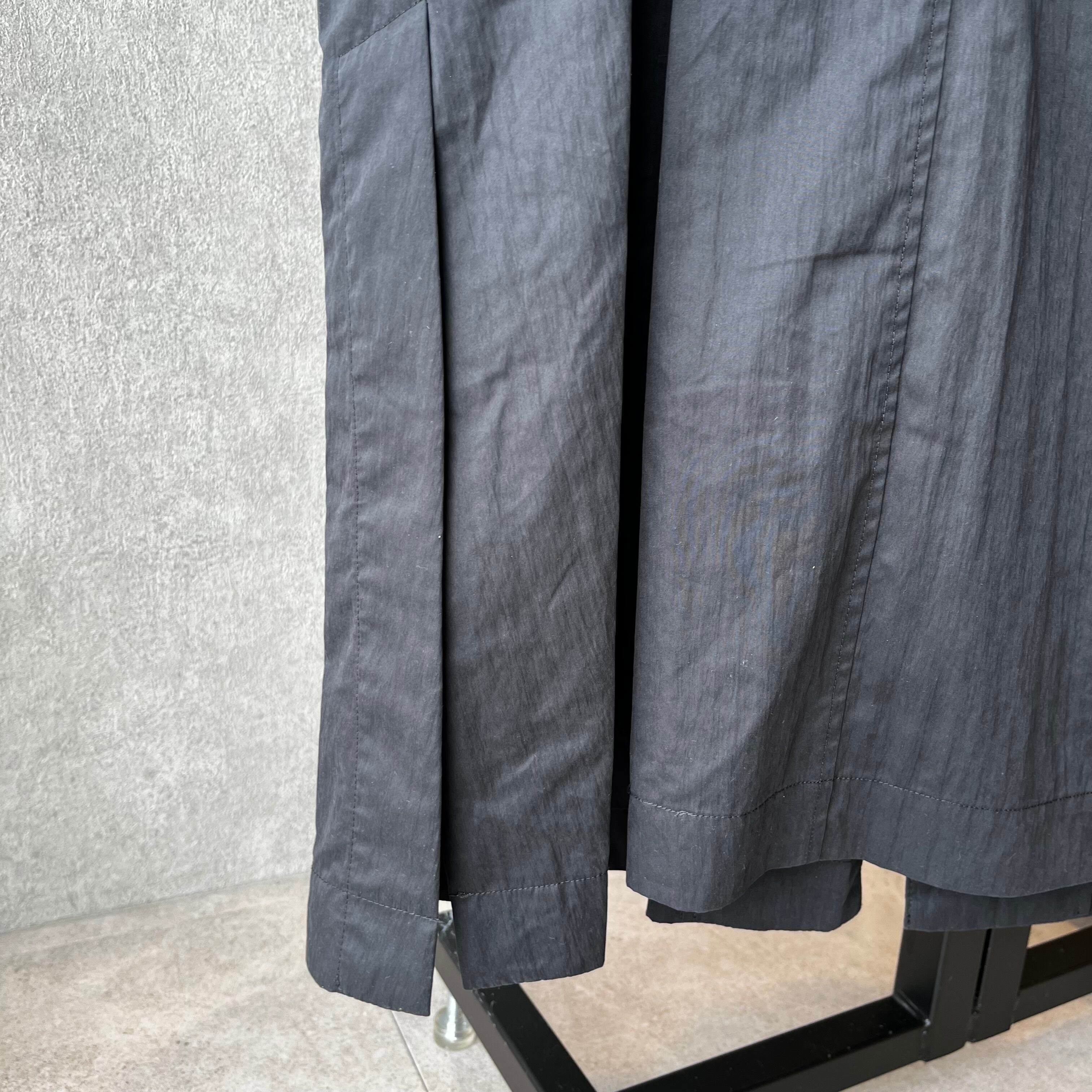 ナイロン混の素材に、表面が少し毛羽つような加工を施すことにより、光沢を抑え上品な質感に仕上がっています。袖の立体的なパターンや、裾の程よいフレアにこだわっています。