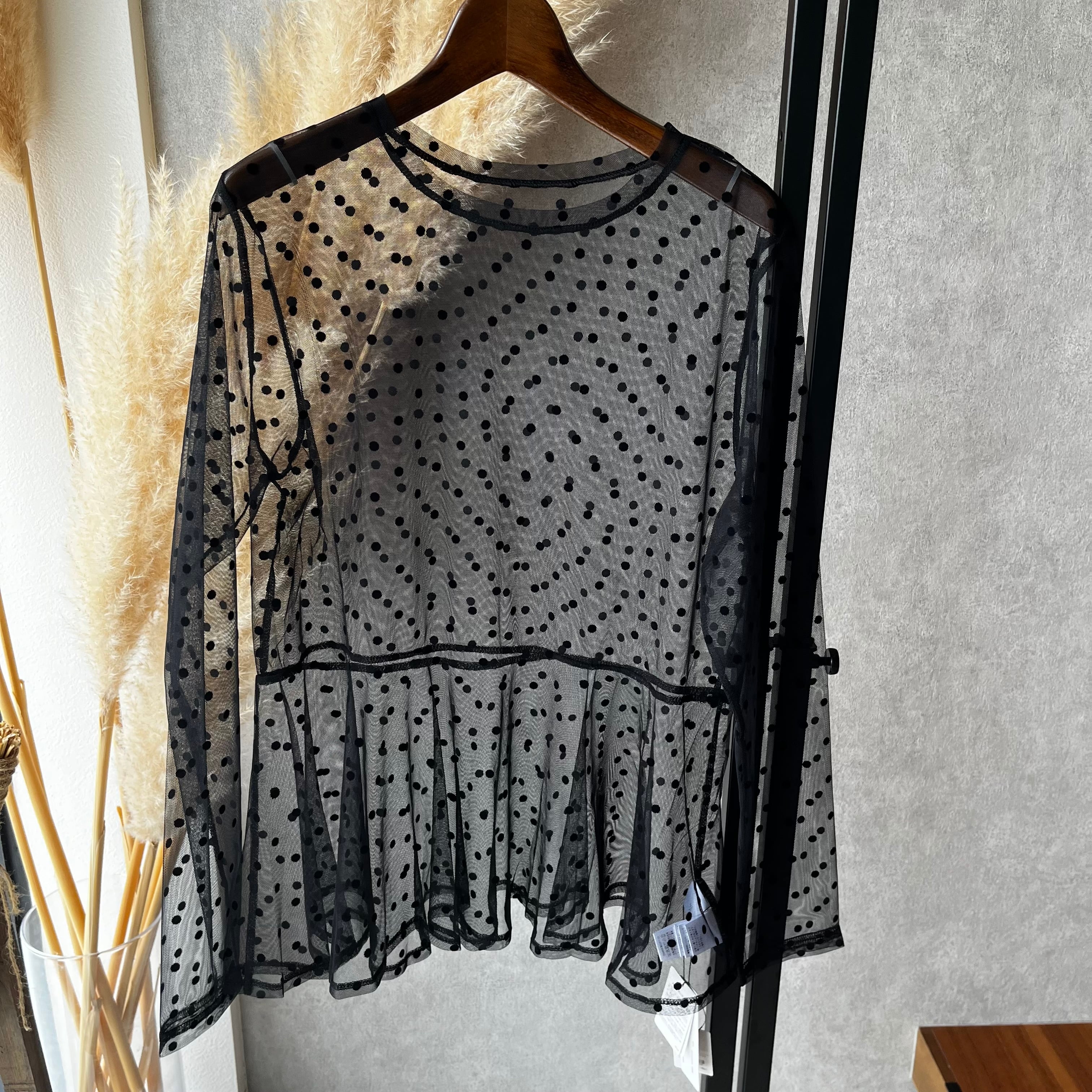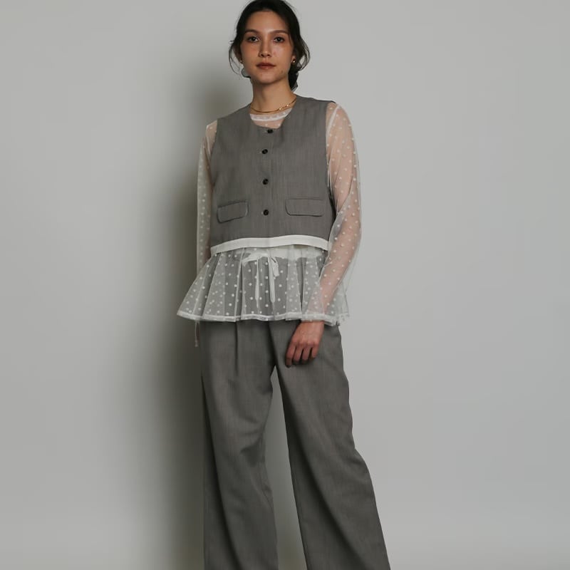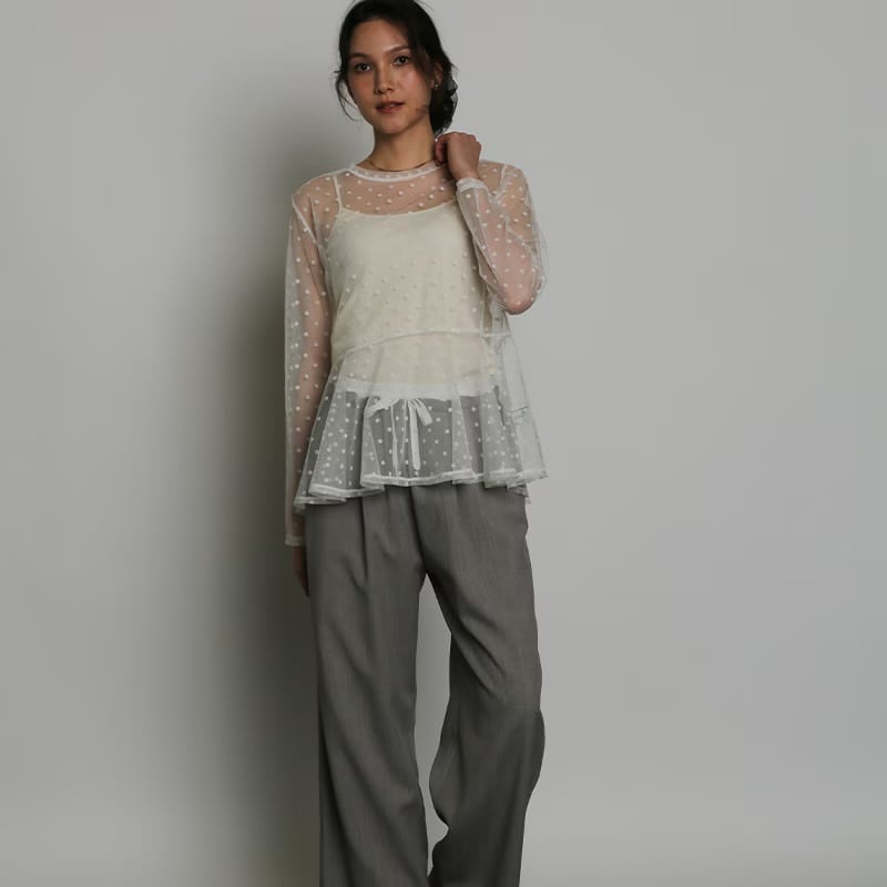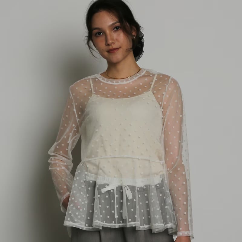 ドット柄のチュールで軽やかかつ華やかな印象に導くチュニック。
