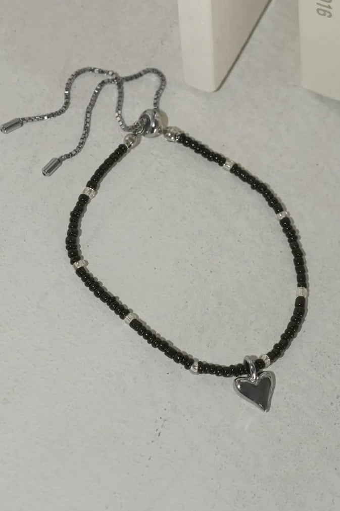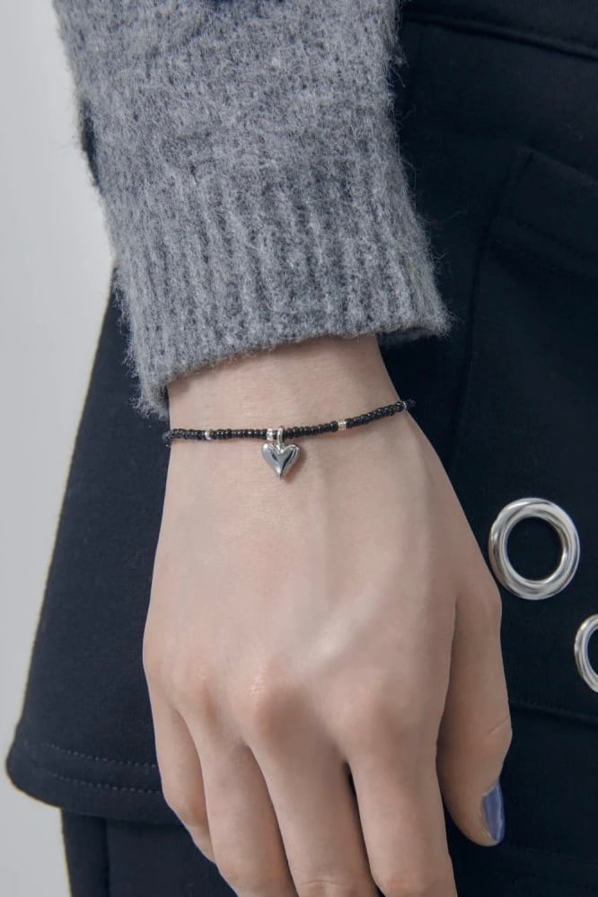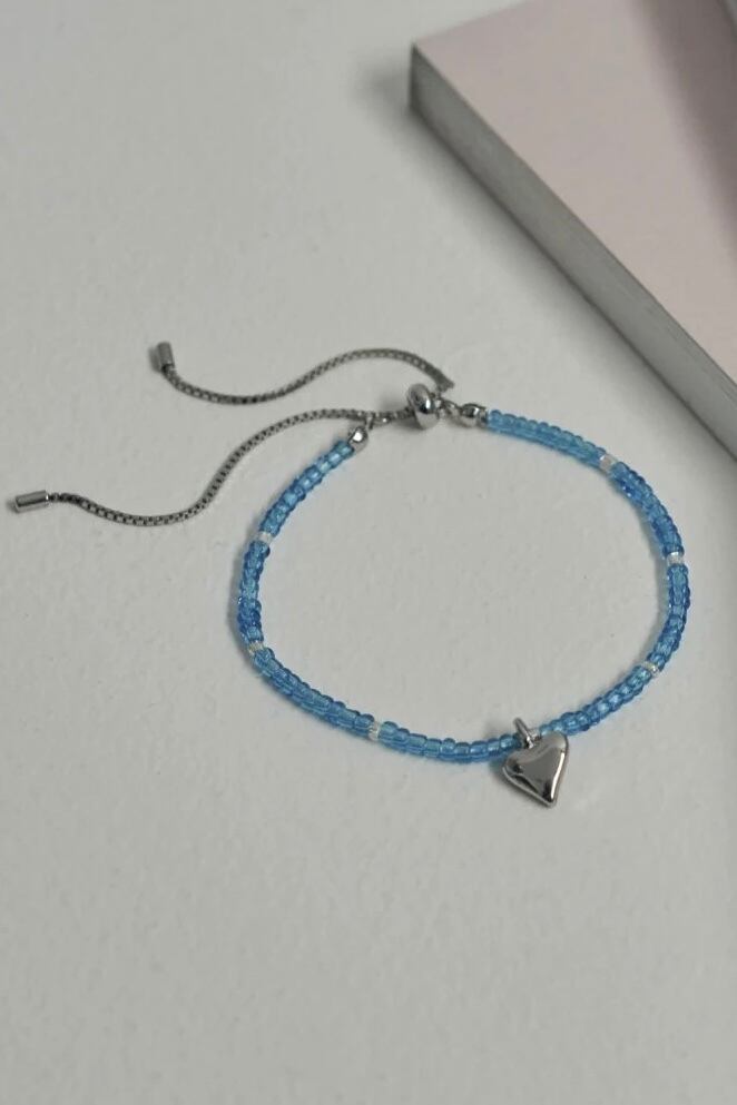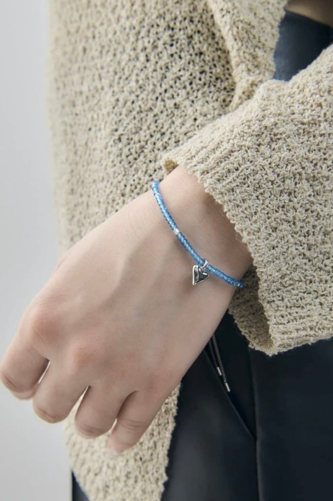 小さめのカラービーズ×ハートモチーフが大人可愛いブレスレット。