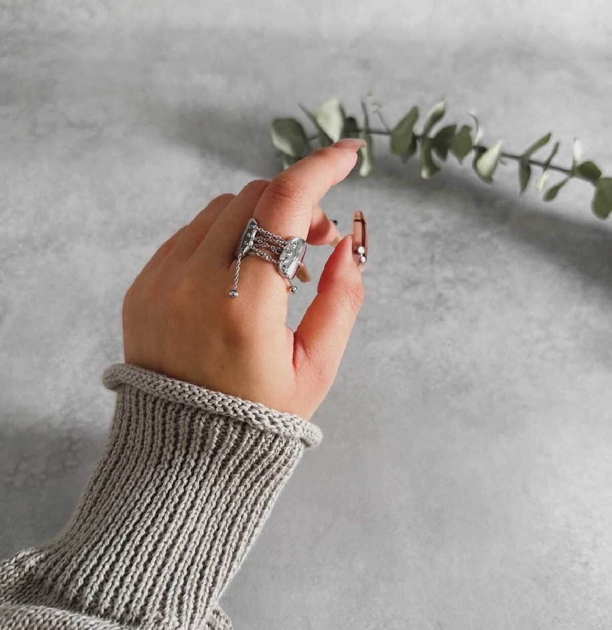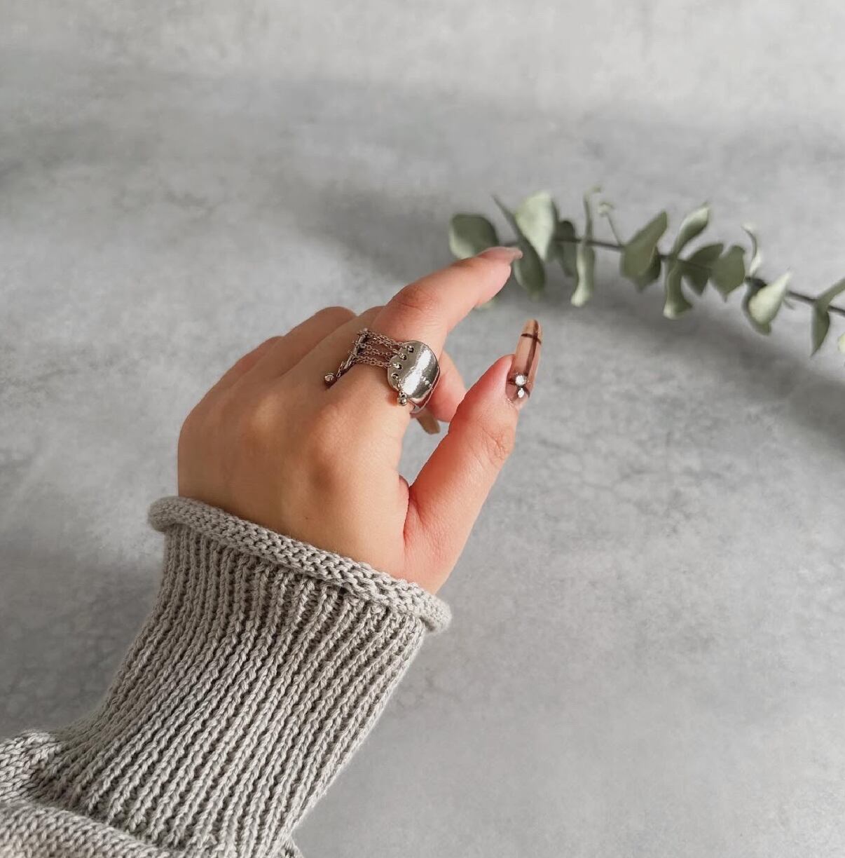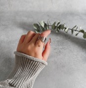 他にないデザインのリングが指元を一気にゴージャスにしてくれます。
