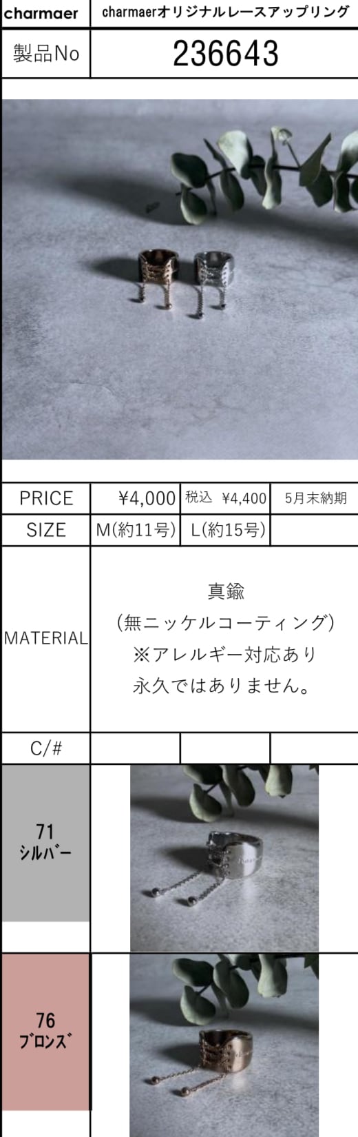 charmaer【予約】charmaerオリジナルレースアップリング(N)