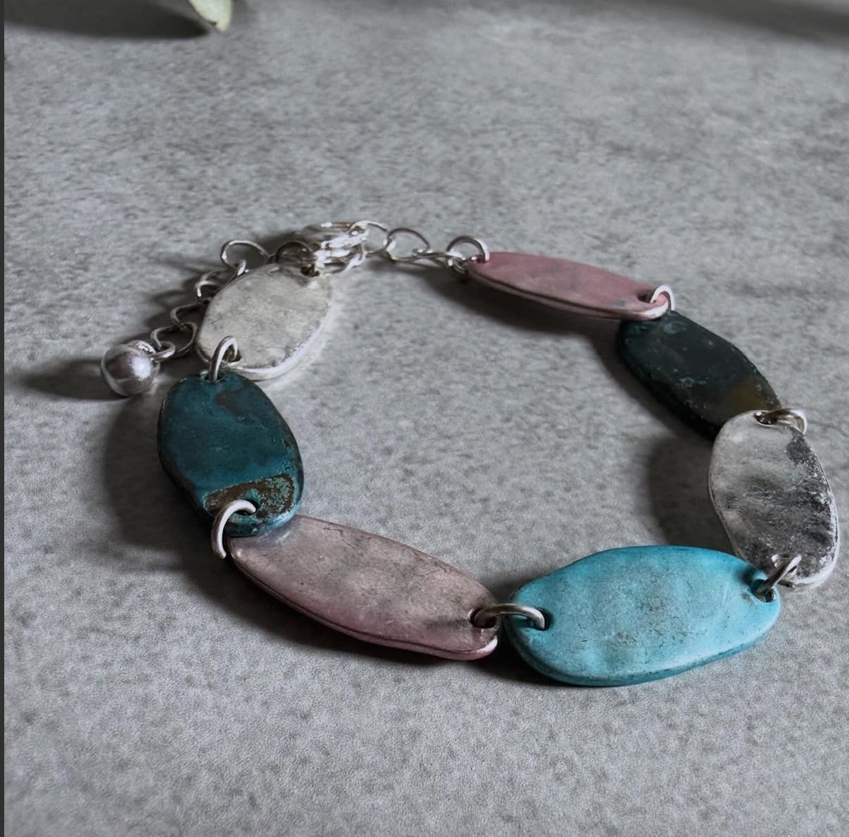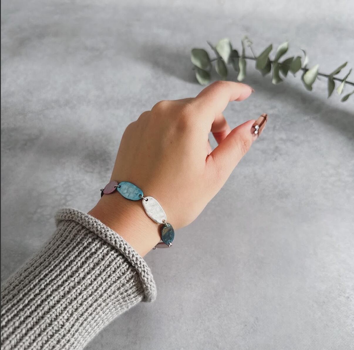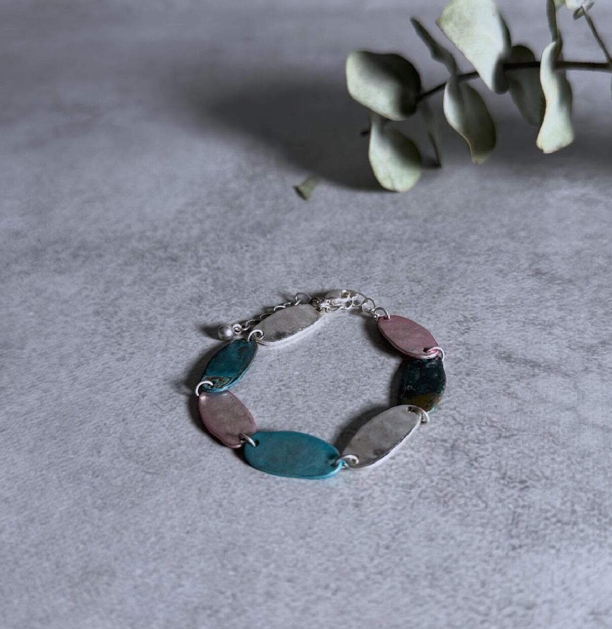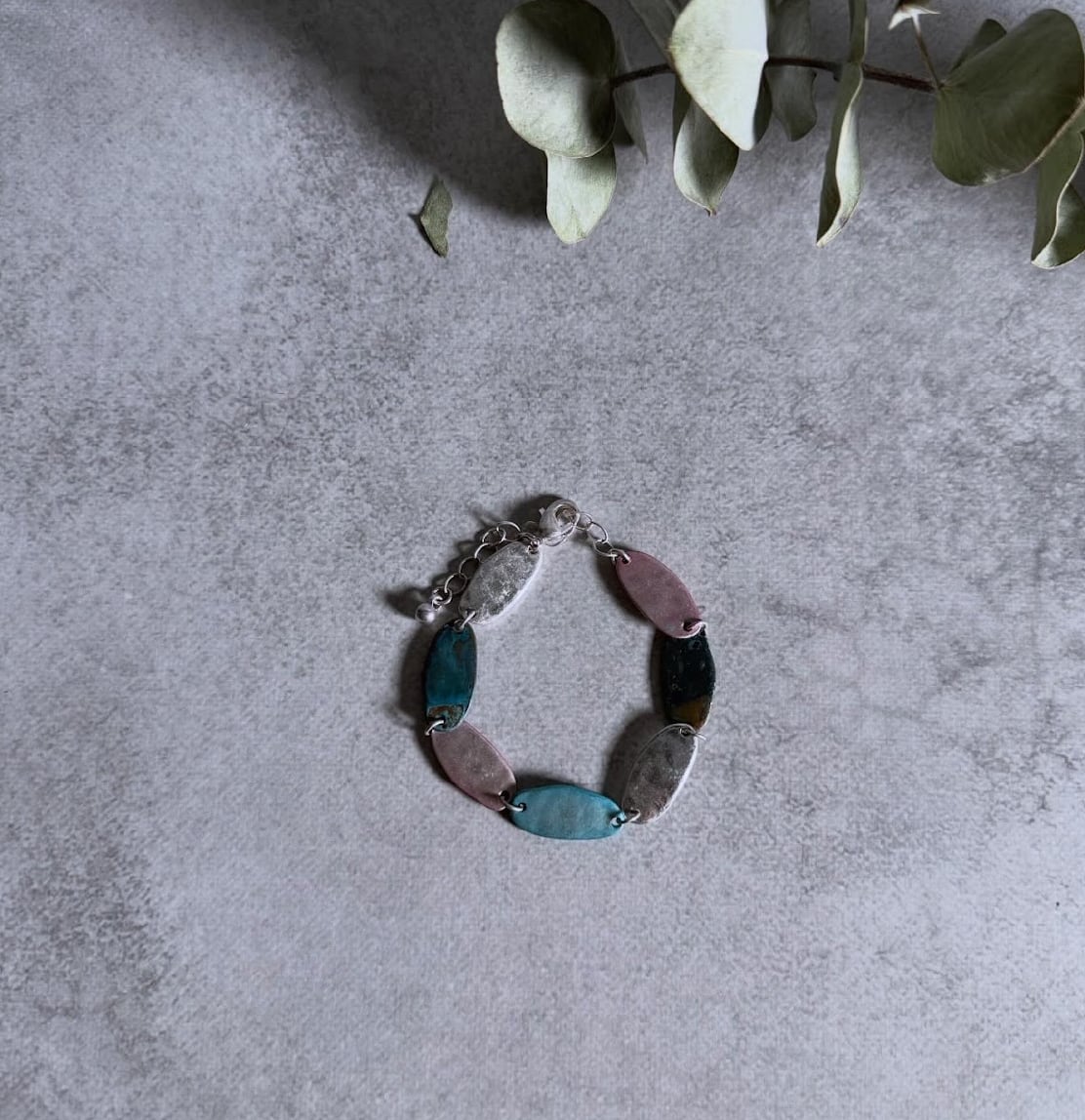 様々なサイズの楕円モチーフが目を惹くブレスレット。