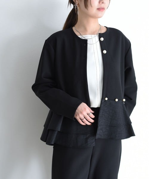 Eimee Law パール付きぺプラムボンディングジャケット(N)