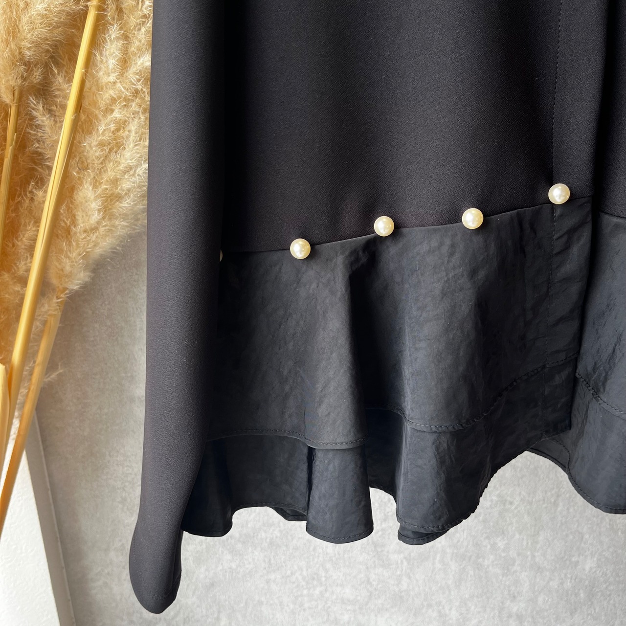 ペプラム部分はハードツイル素材を使用しており、ツヤっとした素材感が上品な雰囲気を演出します。