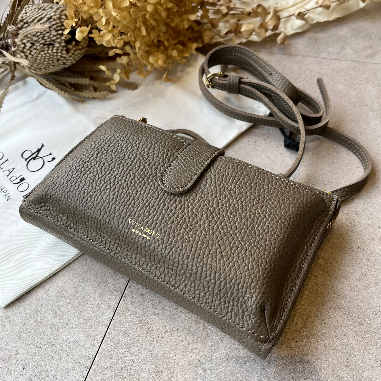 VIOLAd'ORO シュリンク型押しレザー横型スマートフォンポシェット(N)
