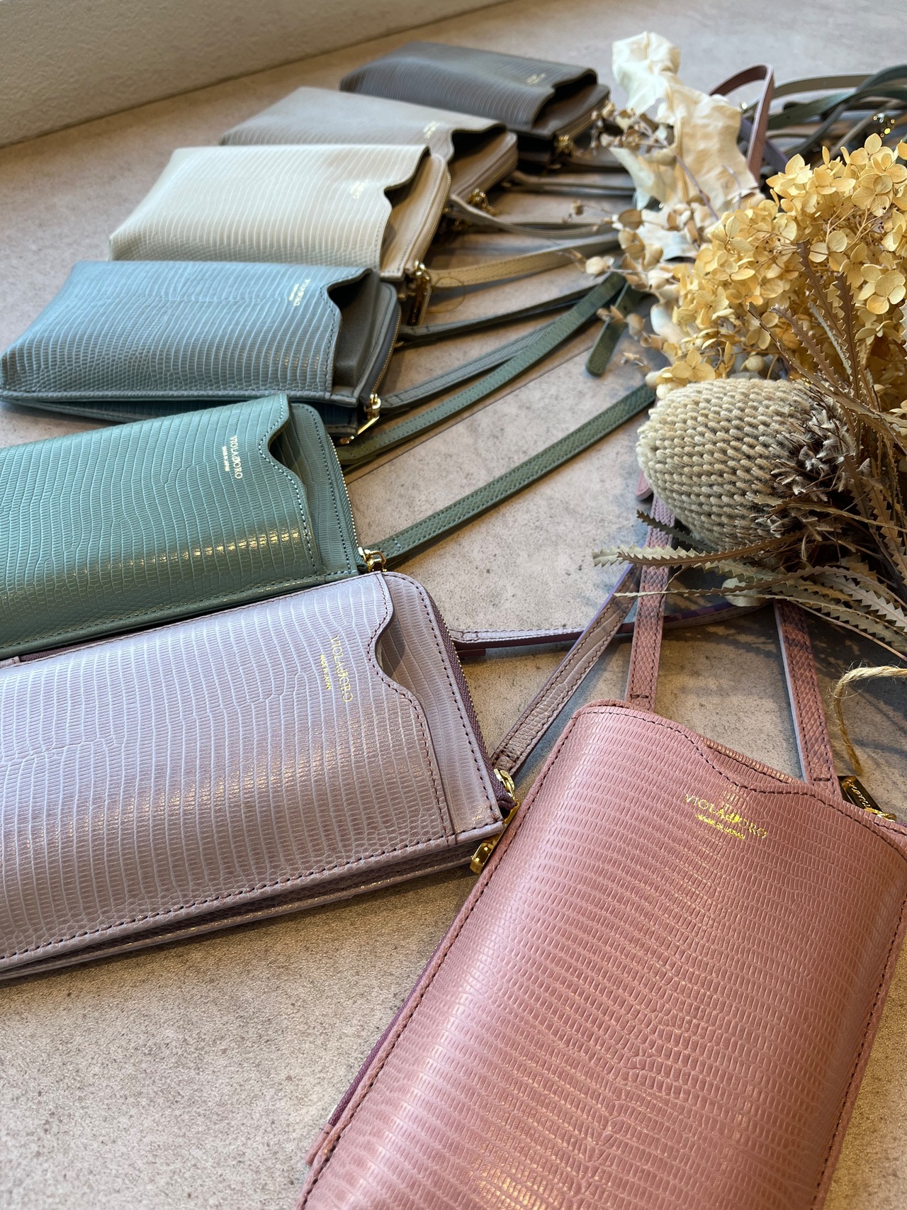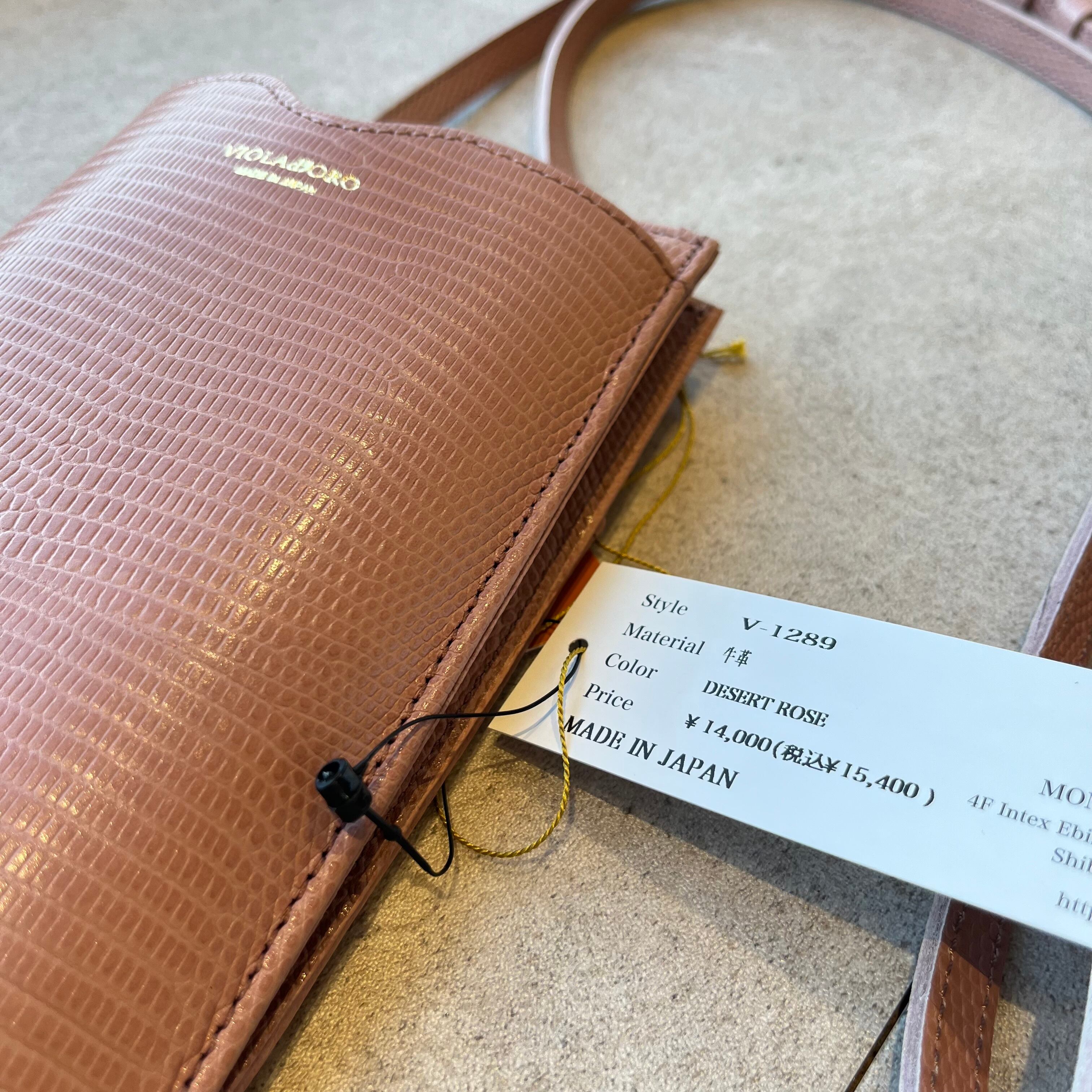 VIOLAd'ORO シュリンク型押しレザースマートフォンポシェット(N)