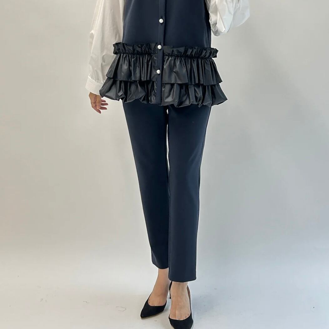 後ろの裾にスリットを入れて、コーディネイトのアクセントになります。